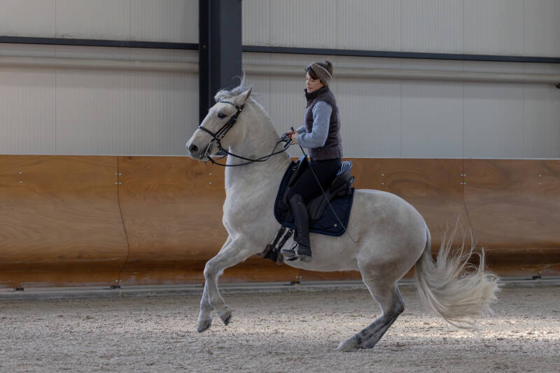 Es ist noch kein Meister vom Himmel gefallen. Zusammen mit dir und deinem Pferd erarbeite ich Schritt für Schritt die verschiedensten Lektionen der Versammlungsreiterei. Die Basisarbeit, welche so immens wichtig ist, steht bei meiner Arbeit im Mittelpunkt. Die Arbeit an diagonalen Tritten, welche irgendwann zur Piaffe wachsen, ist ebenso Basis, wie ein schön gerittenes Schulterherein auf der Volte. Neugierig geworden?